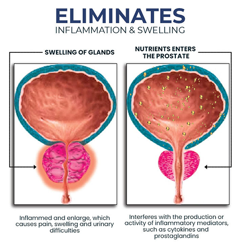 Helps decrease inflammation in and around the prostate, providing relief from symptoms associated with prostatitis or benign prostatic hyperplasia (BPH).