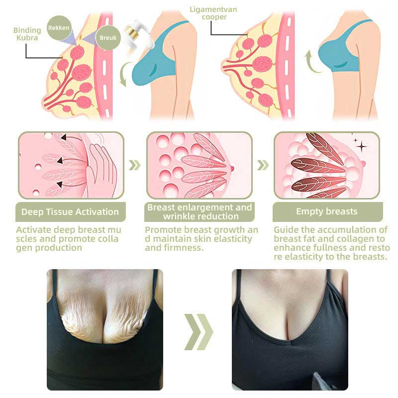 HZA⢠Luxurious Collagen Firming Cream stimulates the formation of fat cells around the breasts through a painless and non-invasive process. As a result, the breasts look larger, rounder, firmer and more upright.