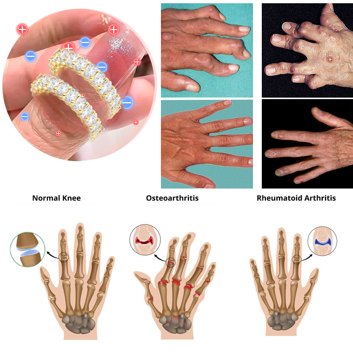 "I've had gout in my hands for years, and I've tried various treatments, but none of them were sustainable. The pain was unbearable until I discovered Magnetology Moissanite Diamond Ring. After only a week, I can already feel the difference. My hands were warm, blood was flowing quickly, and the swelling was starting to go down. After 5 weeks of use, joint inflammation and pain disappear, bones become healthy, and deformed joints return to their original shape. I was so relieved to find something that really works and I am determined to tell everyone I know about the ring."