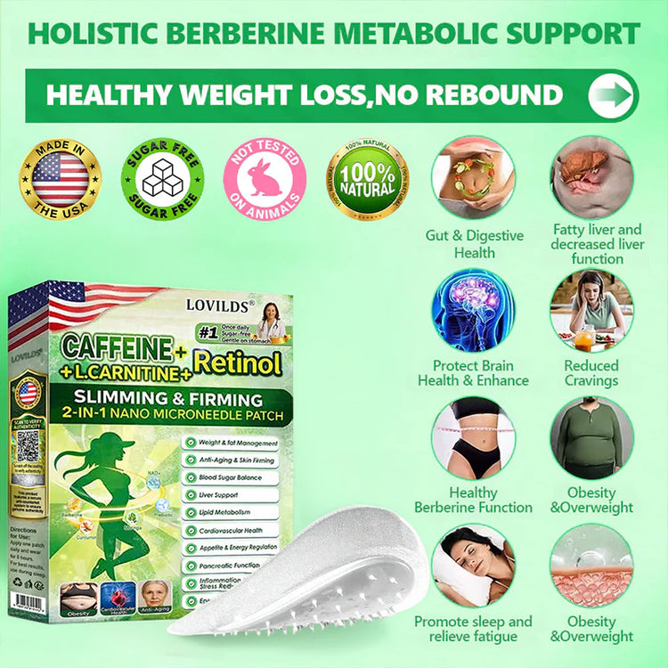 LOVILDS™ 𝑴𝒐𝒓𝒊𝒏𝒈𝗮 · 𝗕𝗲𝗿𝗯𝗲𝗿𝙞𝙣𝙚 × 𝙉𝘼𝐃+ 𝟏𝟎-𝐢𝐧-𝟏 𝗔𝗱𝘃𝗮𝗻𝗰𝙚𝙙 𝙉𝙖𝙣𝙤 𝙈𝙞𝙘𝙧𝙤𝙣𝙚𝙚𝐝𝐥𝐞 𝐏𝐚𝐭𝙘𝙝 was developed through more than 20 years of research by a multidisciplinary team of over 30 experts. Each patch incorporates an ultra-fine microneedle architecture measuring approximately one-seventh the thickness of a human hair, designed to ensure a smooth and virtually painless application. The formulation contains highly concentrated natural bioactive compounds, up to 20-fold higher than conventional market levels, including Moringa and Berberine, which act synergistically to support healthy glycemic responses, appetite regulation, and lipid metabolism, thereby promoting gradual and sustainable weight management. Enriched with NAD+, the patch further supports skin firmness and structural resilience during body-weight fluctuations, helping maintain a lean appearance without compromising comfort or aesthetics. Additional high-efficacy components contribute to the support of immune function, digestive health, gut balance, women’s health, daily energy levels, and fatigue reduction, collectively promoting a more youthful and resilient physiological state from within. Manufactured in facilities that comply with U.S. quality standards, this needle-free, science-driven solution provides a safe and comprehensive approach to effective weight management and long-term metabolic health, designed to work in harmony with the body rather than against it.