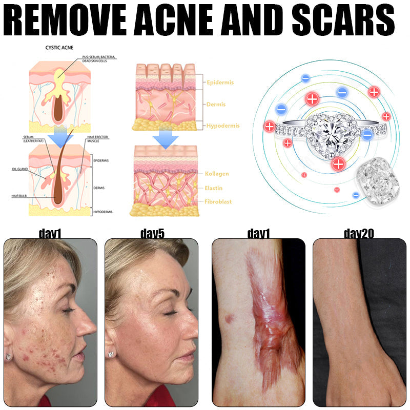 "I love this ring so much because I was injured in an accident and had a scar on my face. I tried many ways to get rid of it, but nothing worked. I became an introvert and never dared to go out again. But God looked after me and heard my prayers. I saw this ring on Facebook and thought I should do something, so I bought 3 of these rings and wear them every day. After wearing them for 3 weeks, all the scars on my face disappeared and I can see my perfect face again. This is absolutely the greatest invention in the world and it's very cheap. I will try to recommend it to everyone I know who needs it.